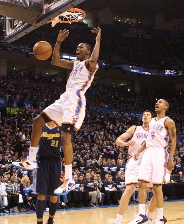 雷霆三少联手赢的第一轮系列赛打的正是平民掘金
